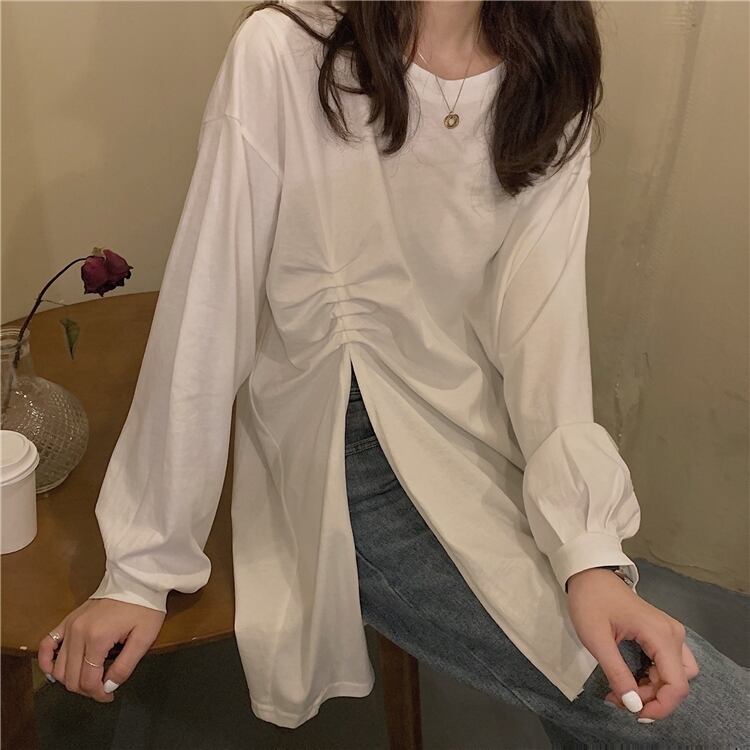 スプリングレッドホワイトシャツ トップス Tシャツ レディース ロング 春物 スーパーモール99988012924