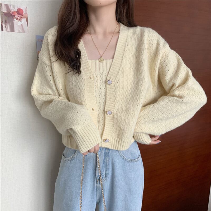 セーター スプリングオータムトップス ショートニットカーディガンジャケット セット 春物 秋物 スーパーモール33893270549