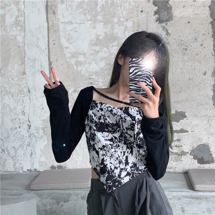 プリントシャツ トップス スプリングレッド薄手Tシャツ ロング 春物 スーパーモール12922498819