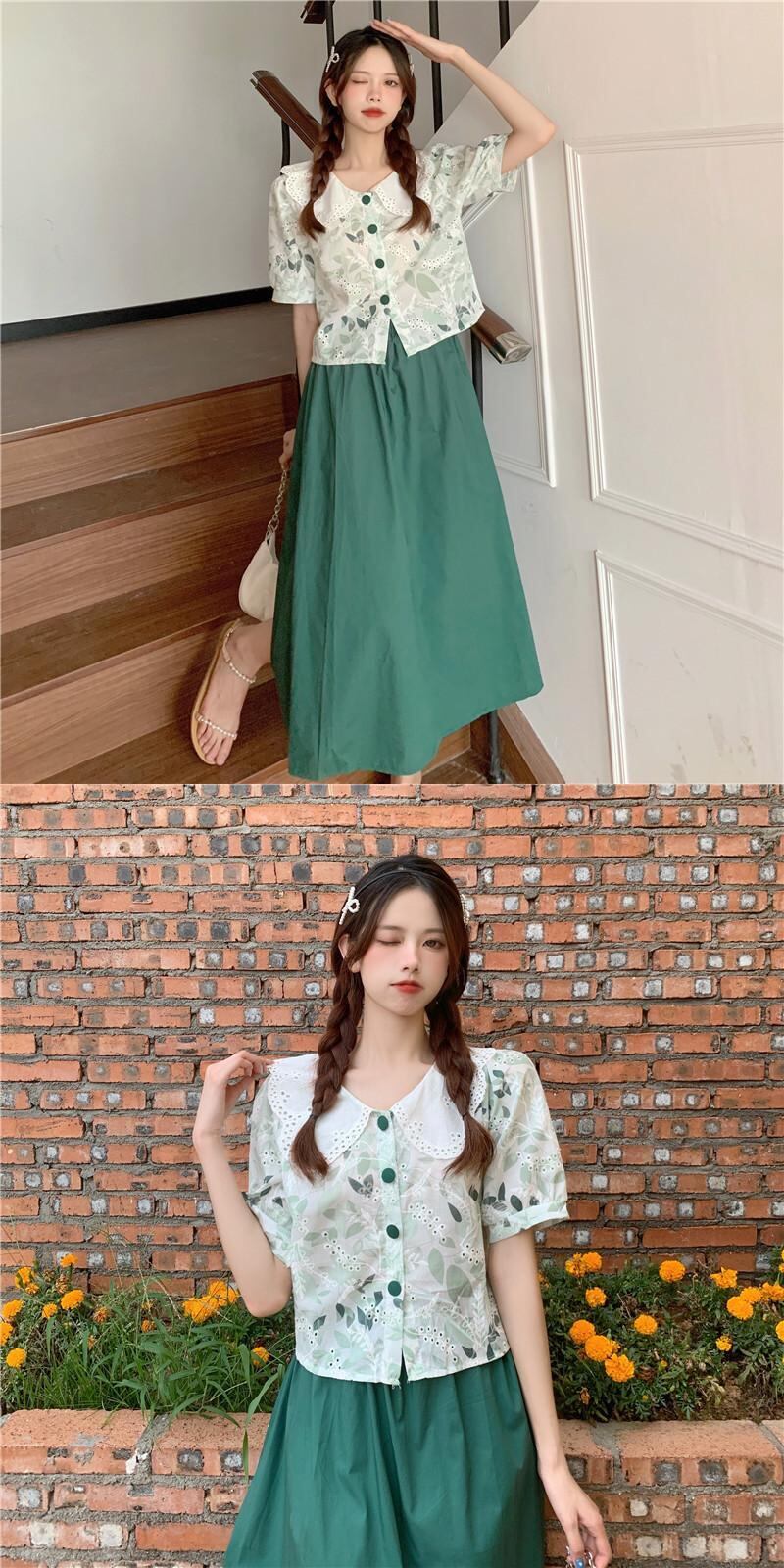 色:グリーントップシングルピース,緑のスカートワンピース,イエローフラワーブラウスワンピース,黄色のスカートワンピース