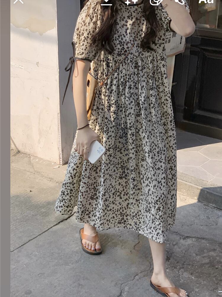 フローラルドレス サマースタイルスリーブロングスカート 夏物 花柄 スーパーモール8520237754