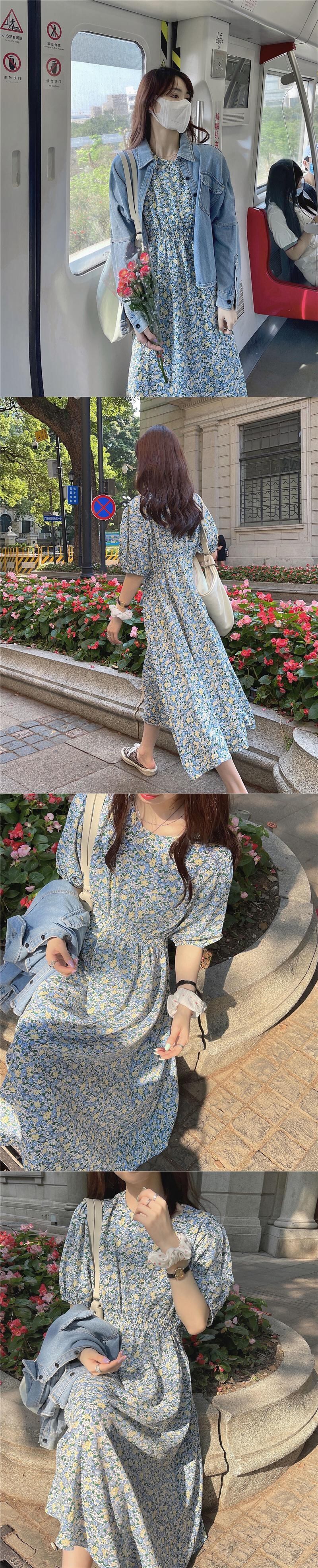 スリーブフローラルドレス サマーロングスカート 夏物 花柄 スーパーモール78431820738