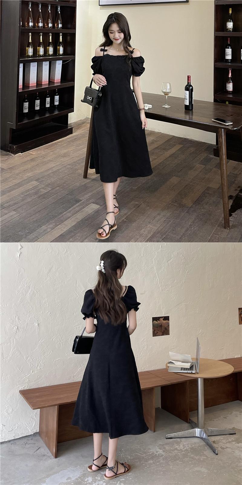 スタイルブラックスリーブドレス サマースカート 夏物 スーパーモール74456645526