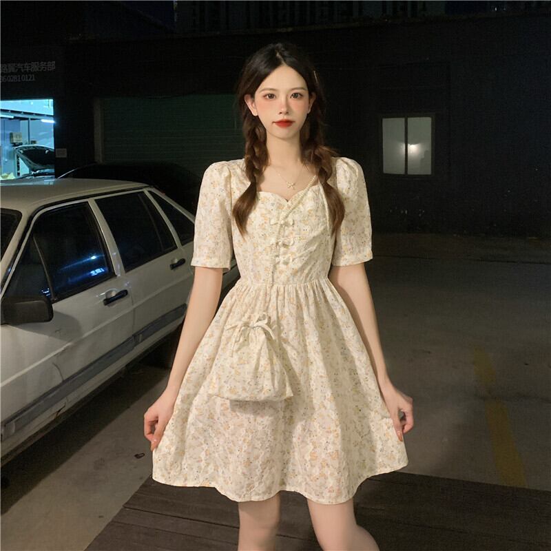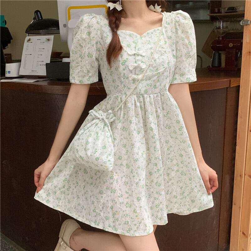 フローラルドレス サマースリーブスカート 大人ガーリー スウィート キュート カジュアル 夏物 花柄 スーパーモール33407920708