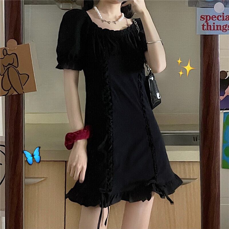 スタンダードブラックドレス サマースタイル レトロ 夏物 スーパーモール26037299530