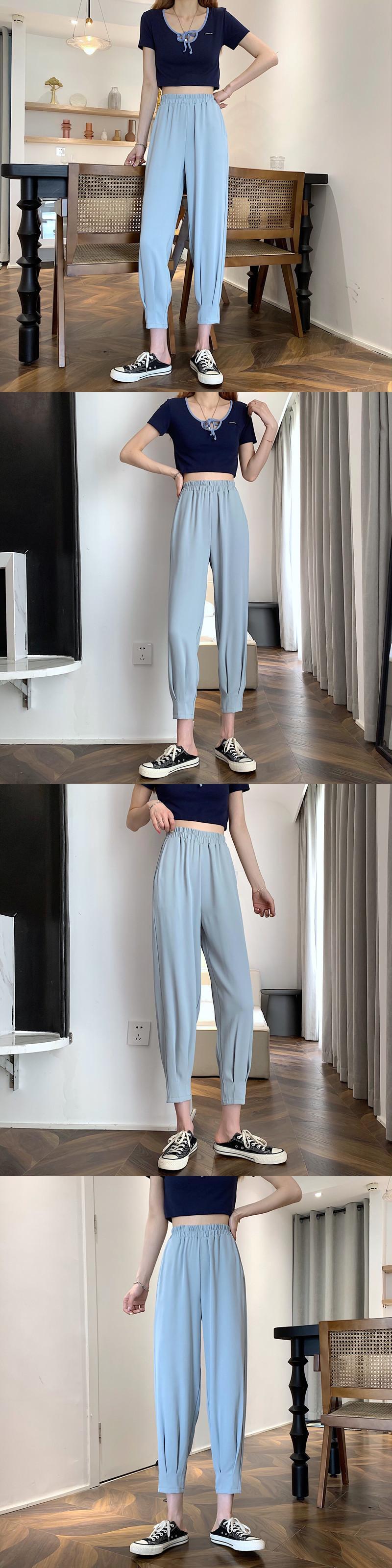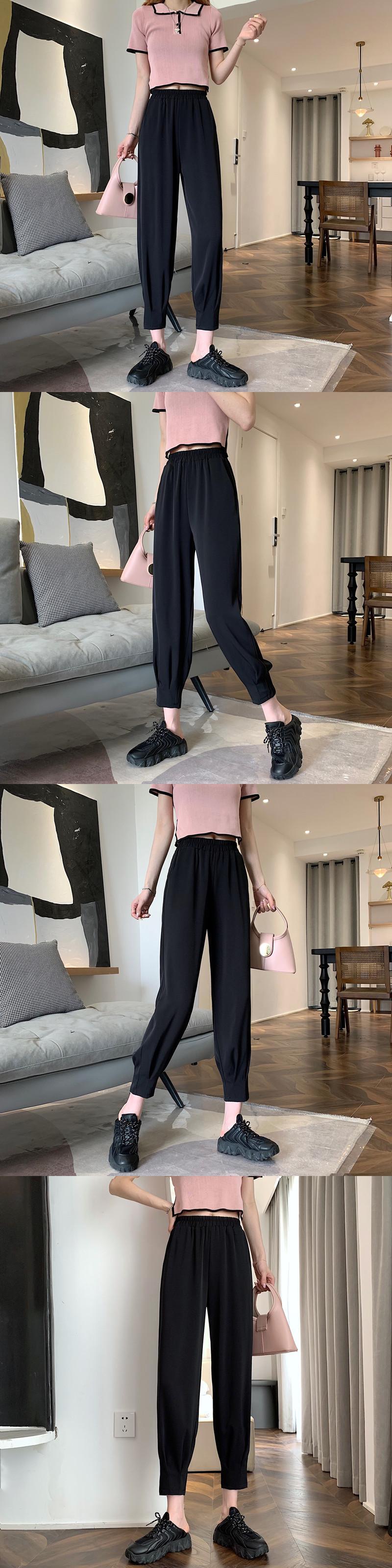 パンツ サマースタイル薄手ブラックハイウェストウェストルーズカジュアルレディース 夏物 スーパーモール24310752923