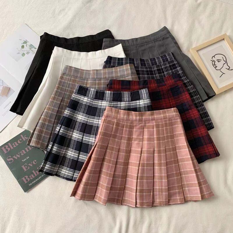 スプリングオータムスタイルショートスカート 格子柄サマー薄手ハイウェストプリーツAライン 春物 夏物 秋物 スーパーモール43621231076