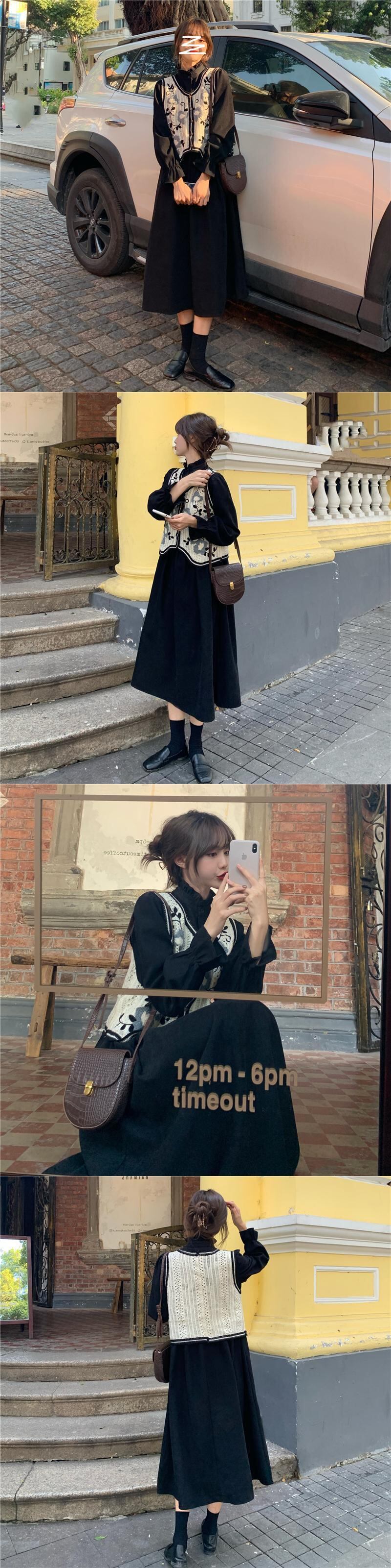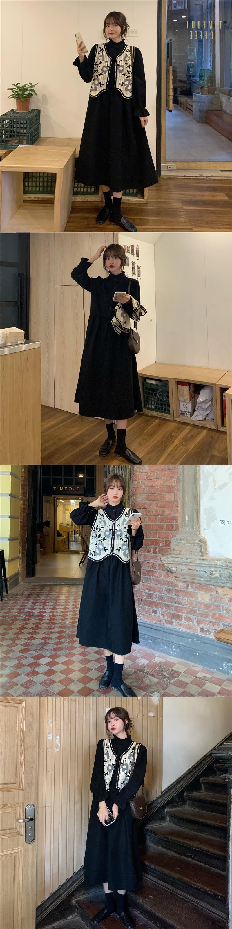 色:黒のワンピース,シングルカーキドレス,白いベストワンピース,アプリコットベストワンピース