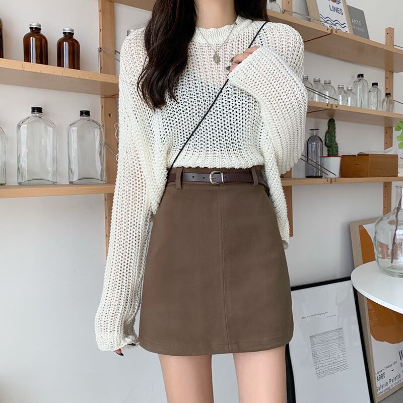 スプリングオータムスカート ハイウェストウェストAラインブラックショートサマー 春物 夏物 秋物 スーパーモール4428291750
