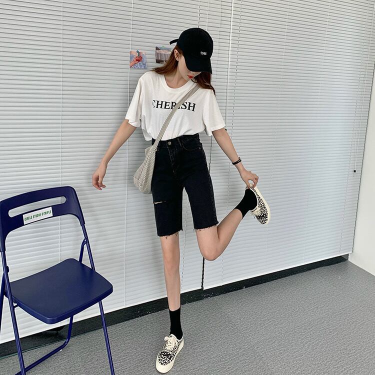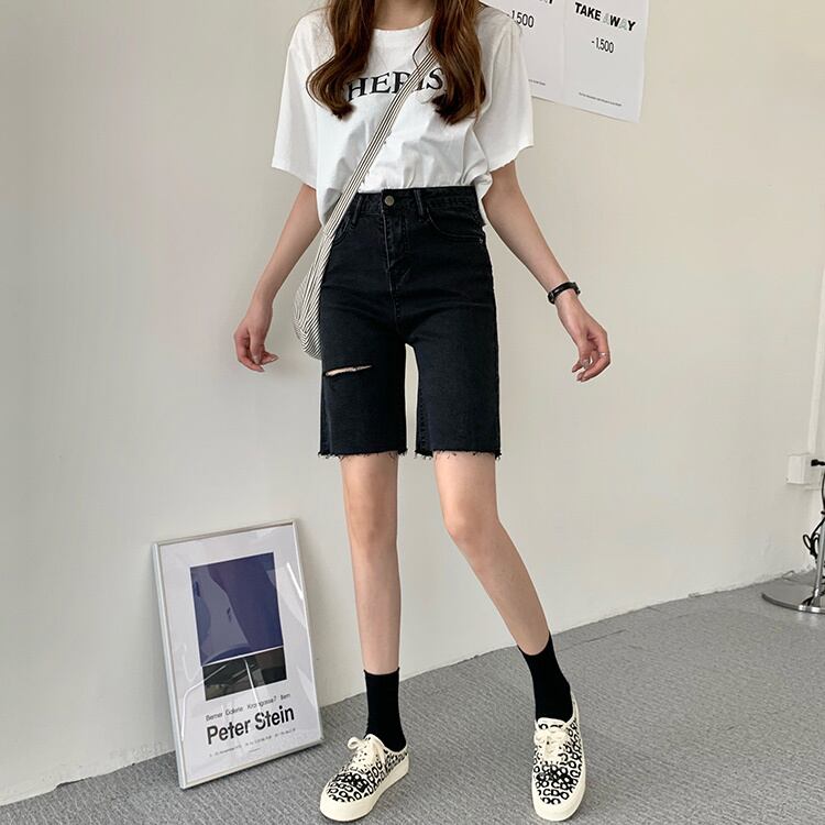 サマーパンツ ブラックジーンズ ハイウェストウェストショーツ 夏物 ブルマー スーパーモール430399755