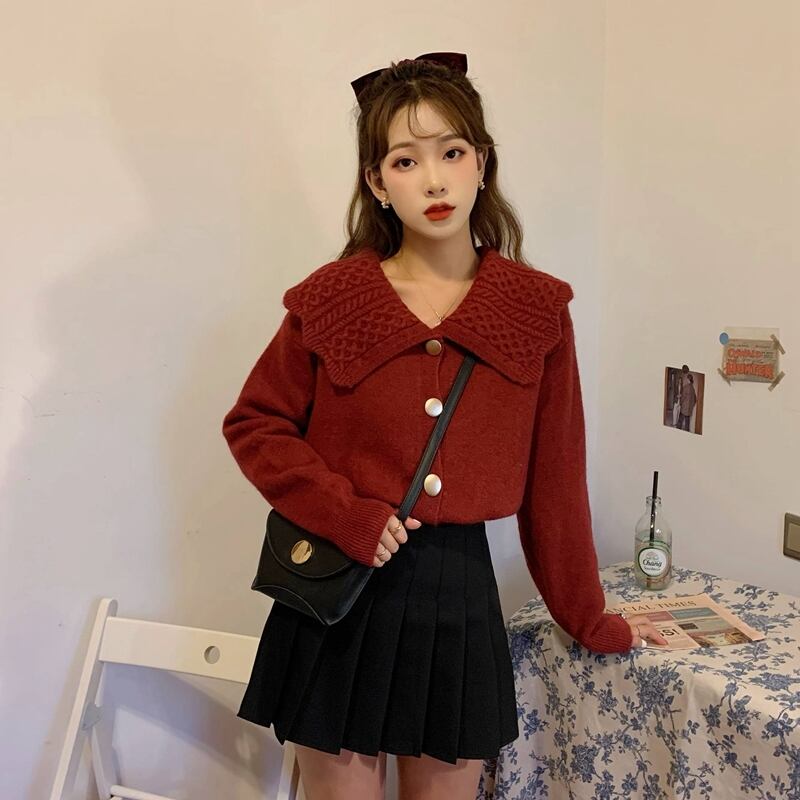 レッドセーター スプリングオータムスタンダードルーズニットカーディガンジャケット レトロ 春物 秋物 スーパーモール42013143115