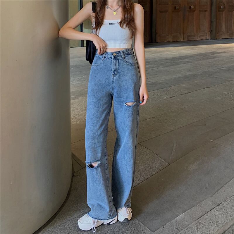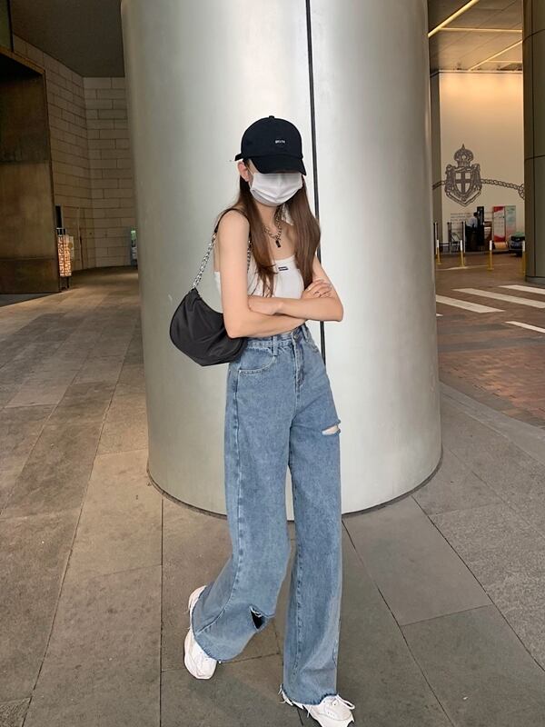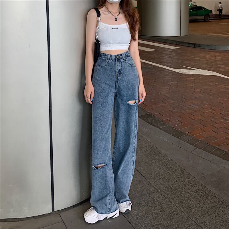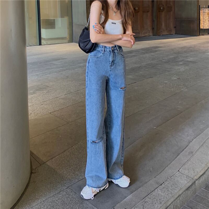 スプリングオータムジーンズ レディーススリムハイウェストウェストルーズワイドレッグパンツ 春物 秋物 ワイドパンツ スーパーモール30624201072
