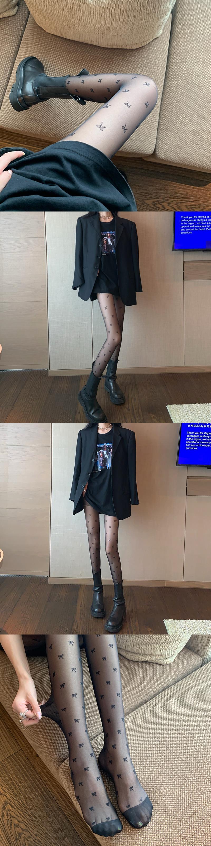 薄手リボンブラックストッキング スプリングレギンス 春物 タイツ ソックス スーパーモール4788511132
