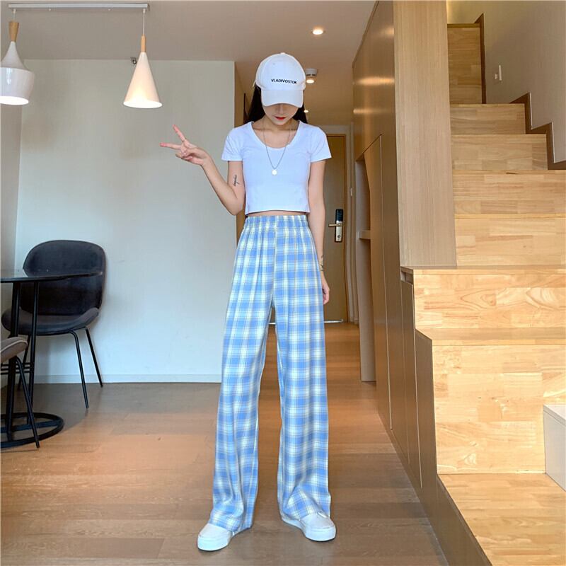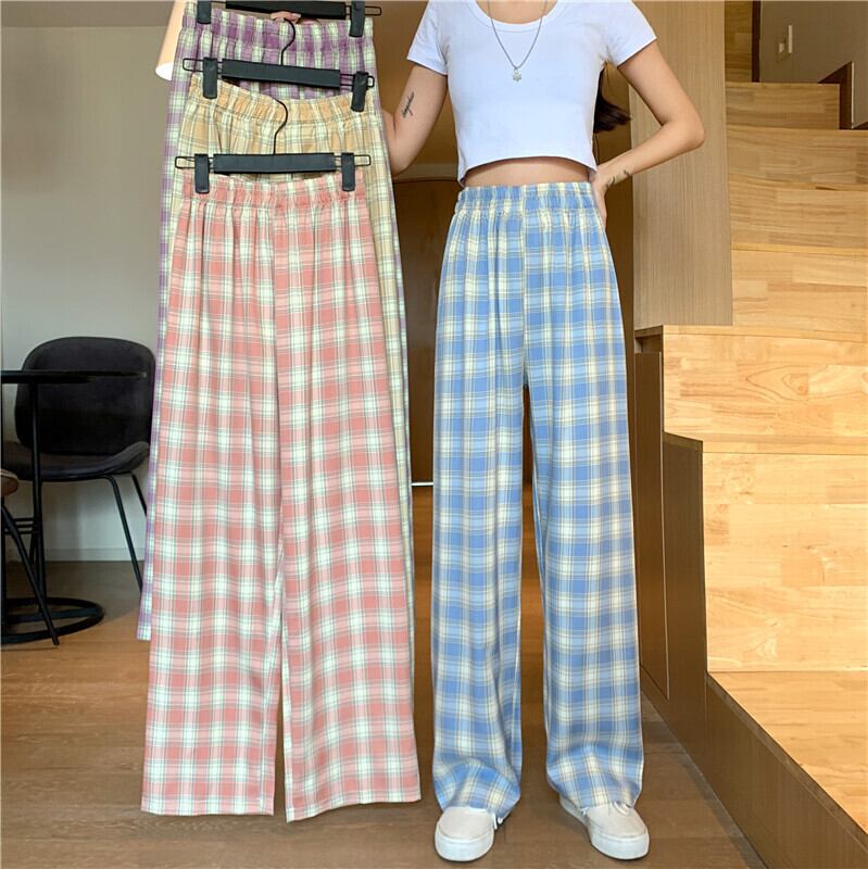 ルーズパンツ スプリングオータム格子柄ハイウェストウェストワイドレッグカジュアル 春物 秋物 ワイドパンツ スーパーモール19813012264