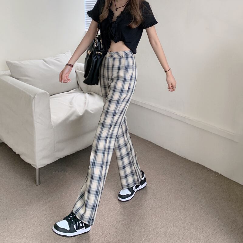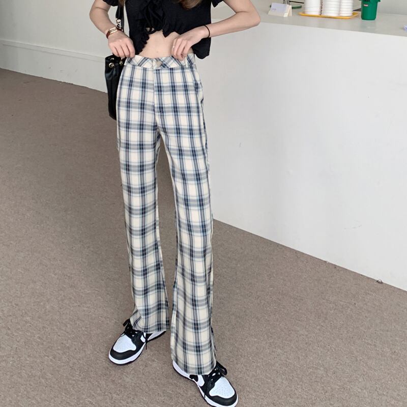 ルーズパンツ サマースリムハイウェスト格子柄カジュアル 夏物 スーパーモール26215693200
