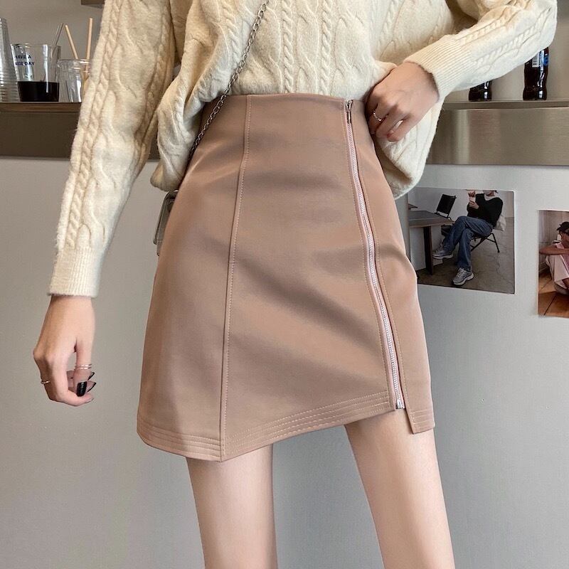ジッパーハイウェストウェストスカート スプリングオータムレッドレザーAラインショート 春物 秋物 スーパーモール99824143717