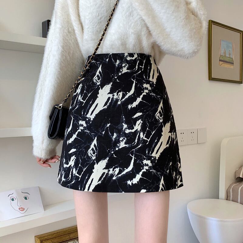 スプリングオータムショートスカート ハイウェストウェストAライン 春物 秋物 スーパーモール76927730518