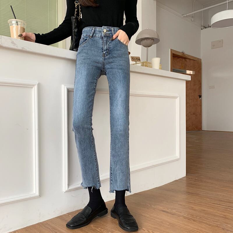 スプリング薄手ハイウェストジーンズ レディーススタンダードパンツ レトロ 春物 スーパーモール44985753445
