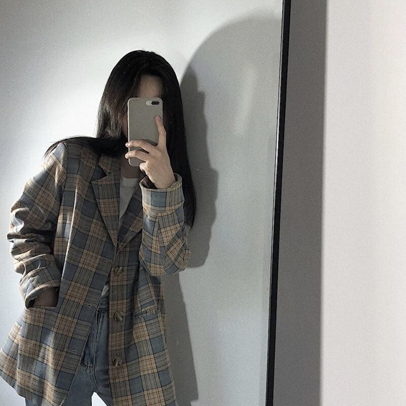格子柄ジャケット レディーススプリングオータム薄手スタンダードカジュアル レトロ 春物 秋物 スーパーモール19443119808