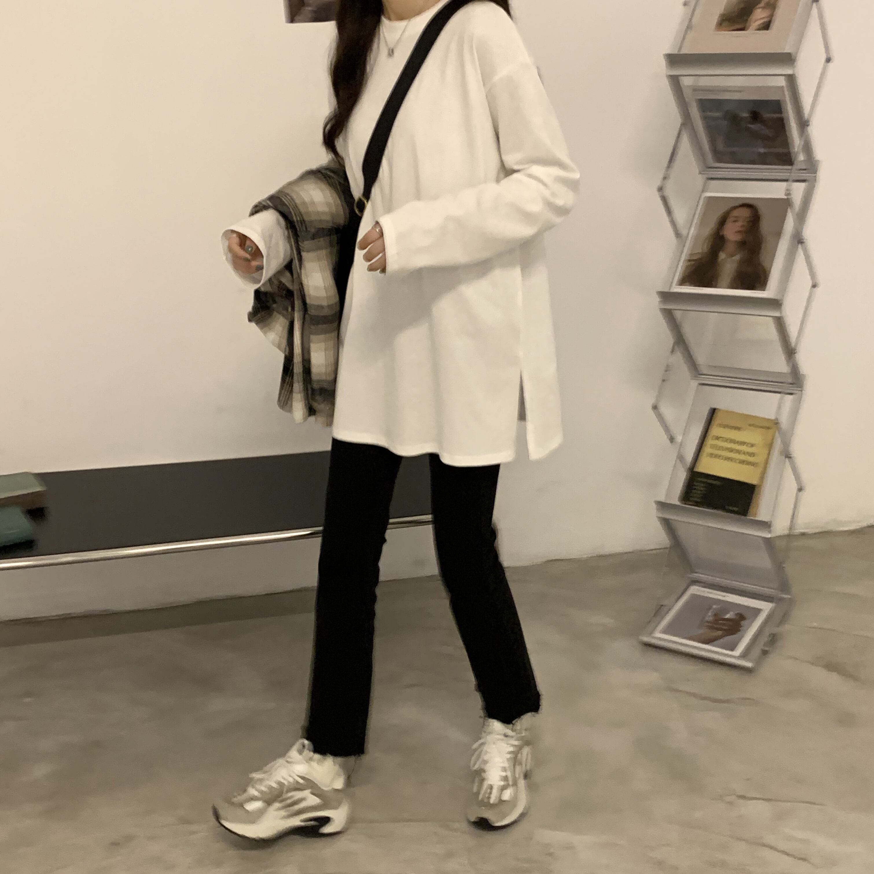 ホワイトTシャツ シャツ レディーススプリングオータムルーズトップス ロング 春物 秋物 スーパーモール14342055115