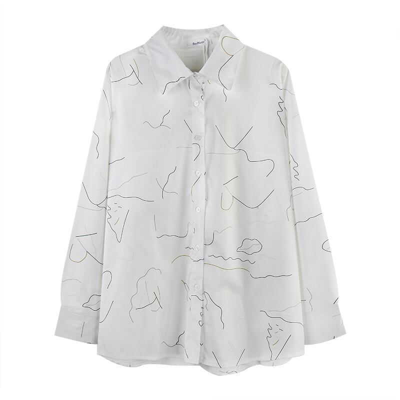 スプリングルーズプリント柄ホワイトシャツ トップス ロング 春物 スーパーモール51945711865