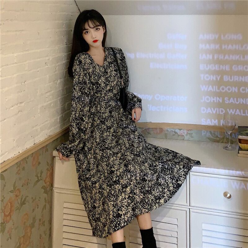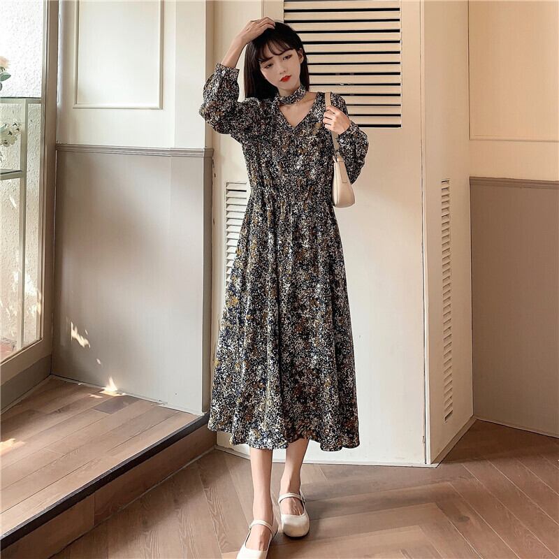 スプリングドレス スカート オータム薄手フローラル ロング 春物 秋物 花柄 スーパーモール28637636711