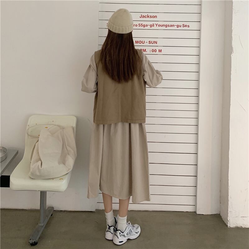 色:ワンピースアプリコットドレス,白いワンピースのワンピース,カーキベストワンピース,ブラックベストワンピース