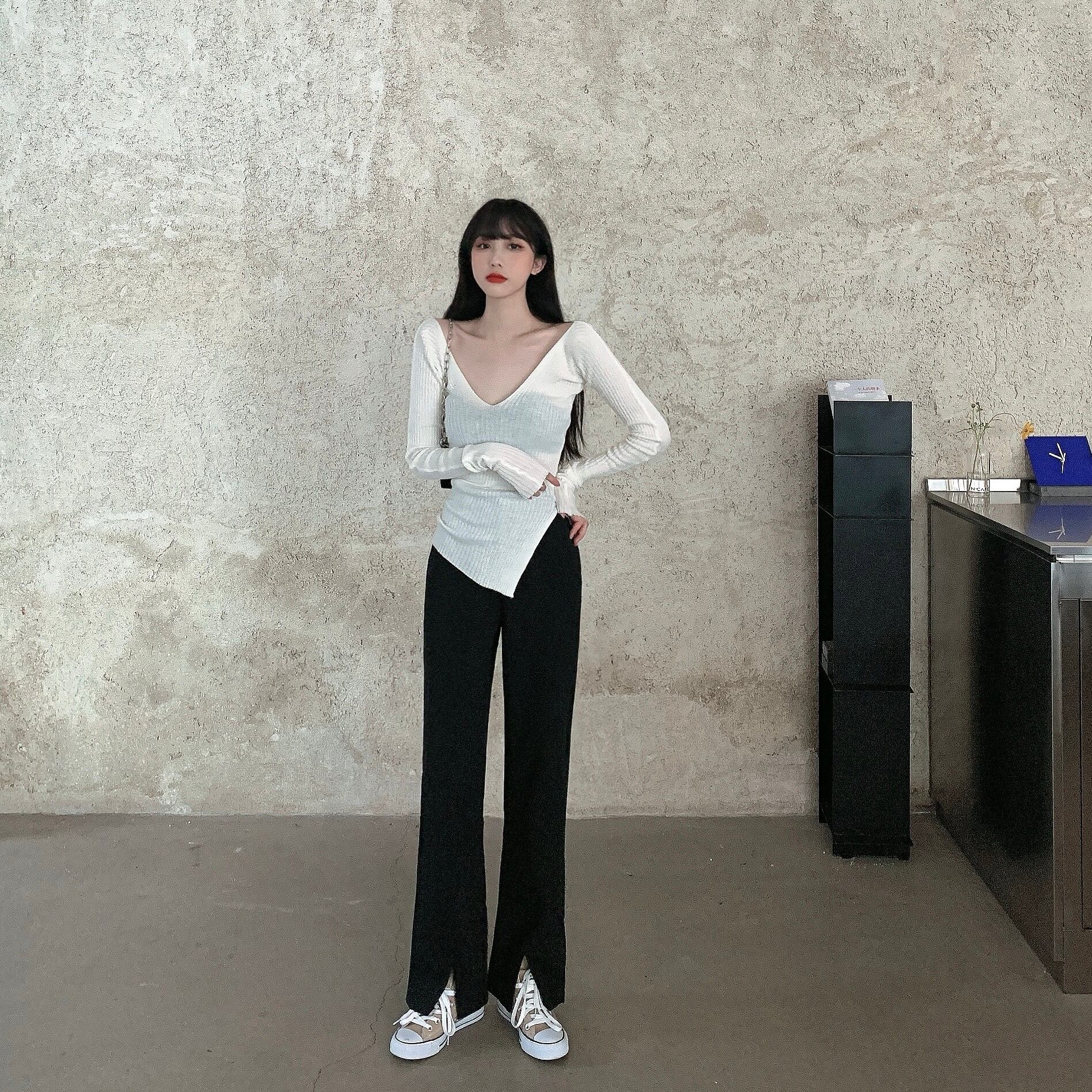 ブラックパンツ スプリングオータムハイウェストカジュアルルーズ 春物 秋物 スーパーモール80898039852