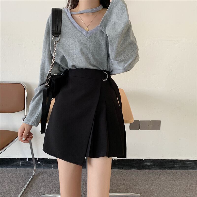 ウェストAラインスカート ショートスプリングオータムブラックスタンダードプリーツ レトロ 春物 秋物 スーパーモール36874313611