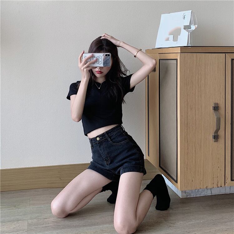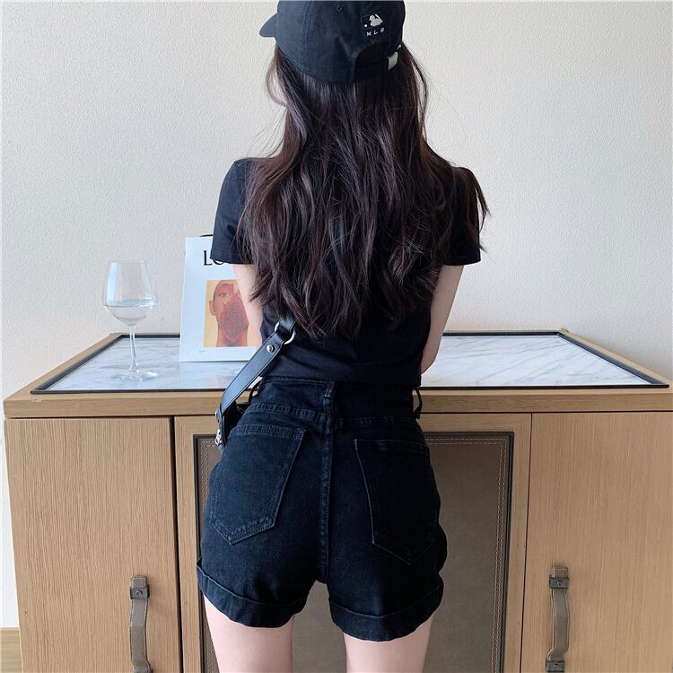 ブラックハイウェストショーツ サマールーズ薄手パンツ 夏物 ブルマー スーパーモール23657498567