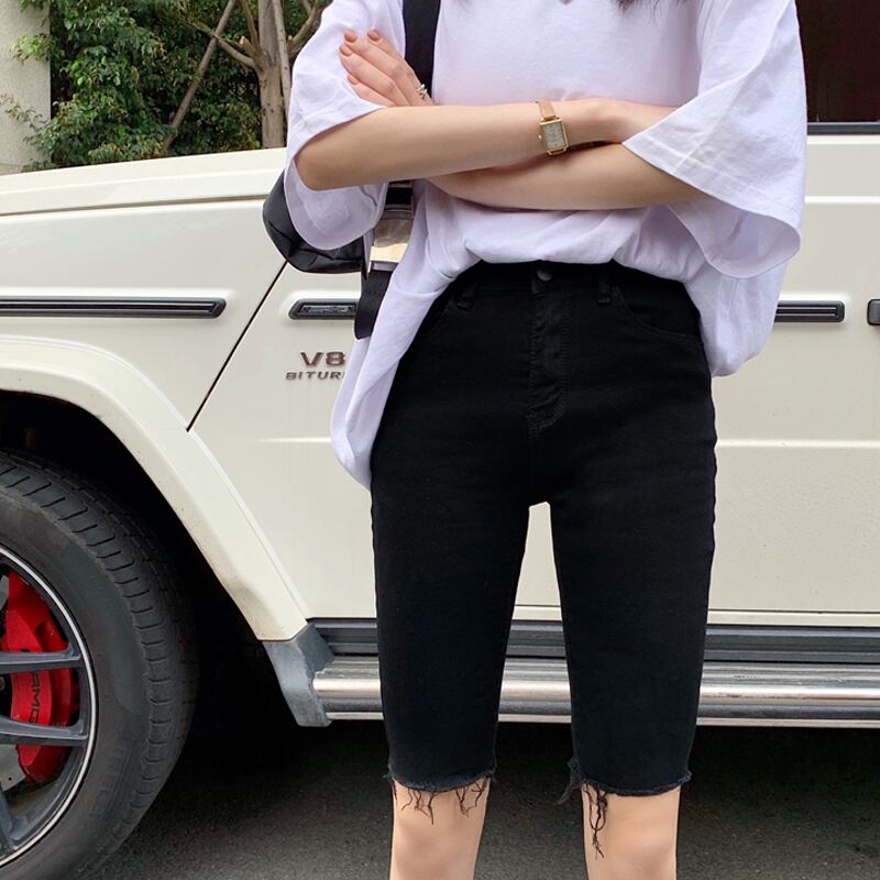 ブラックパンツ ショーツ スプリングハイウェストウェストジーンズ レディース 春物 ブルマー スーパーモール96966426634