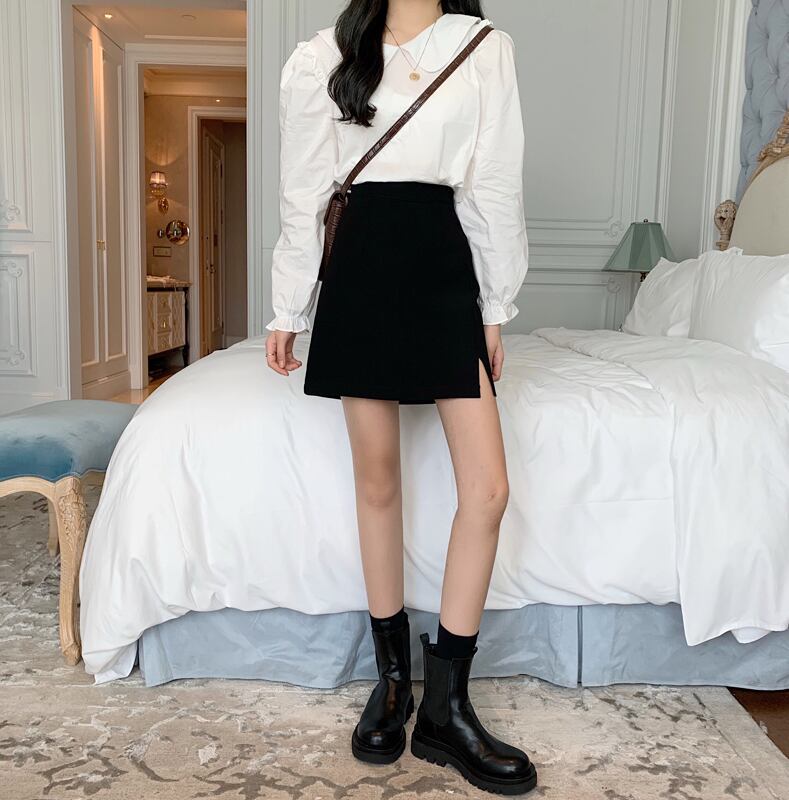スカート サマーブラックハイウェストウェストAラインショート 夏物 スーパーモール27744640877