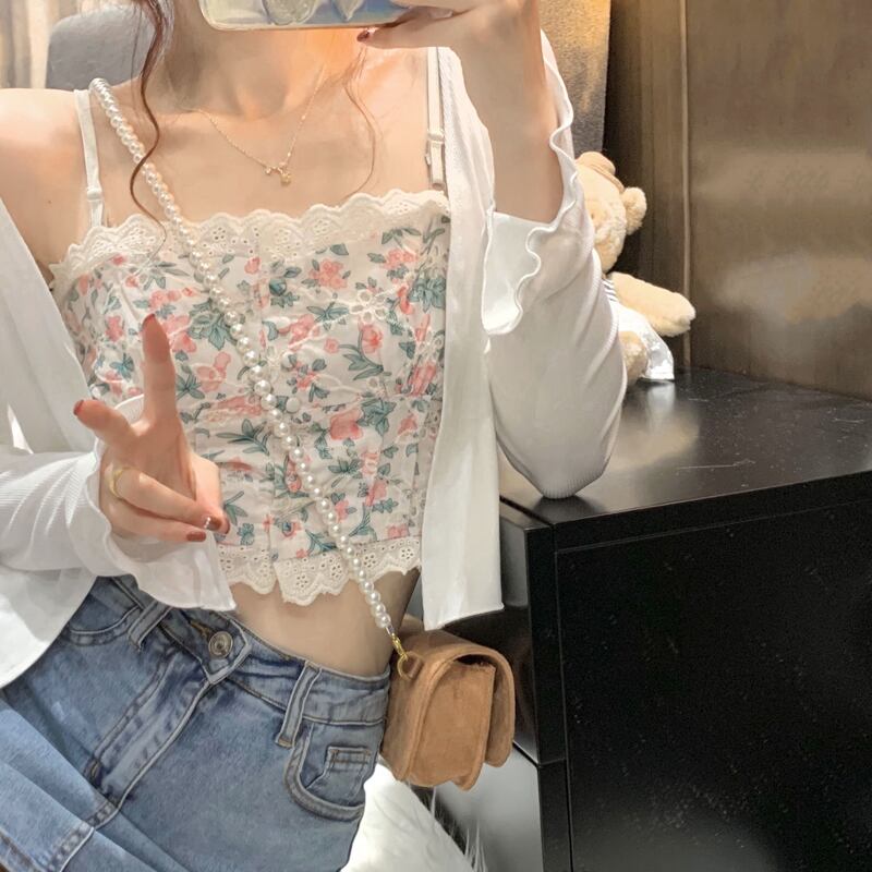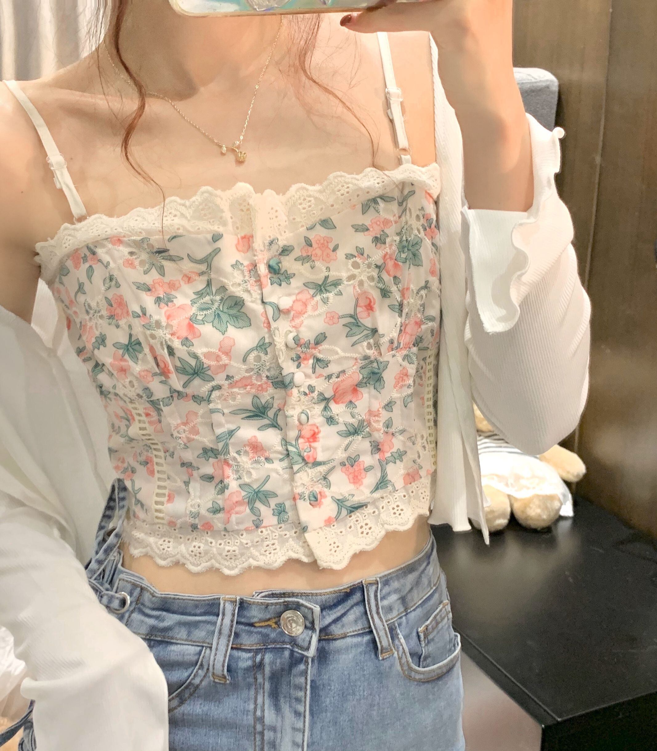 色:花柄のストラップ,ホワイトカーディガンワンピース