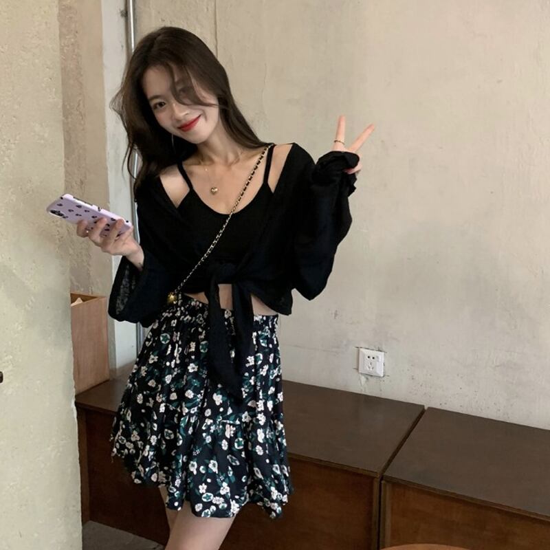 色:日焼け止め+ベスト,花柄スカートワンピース
