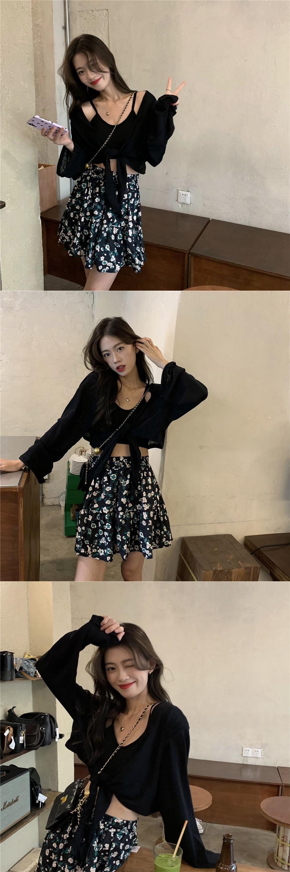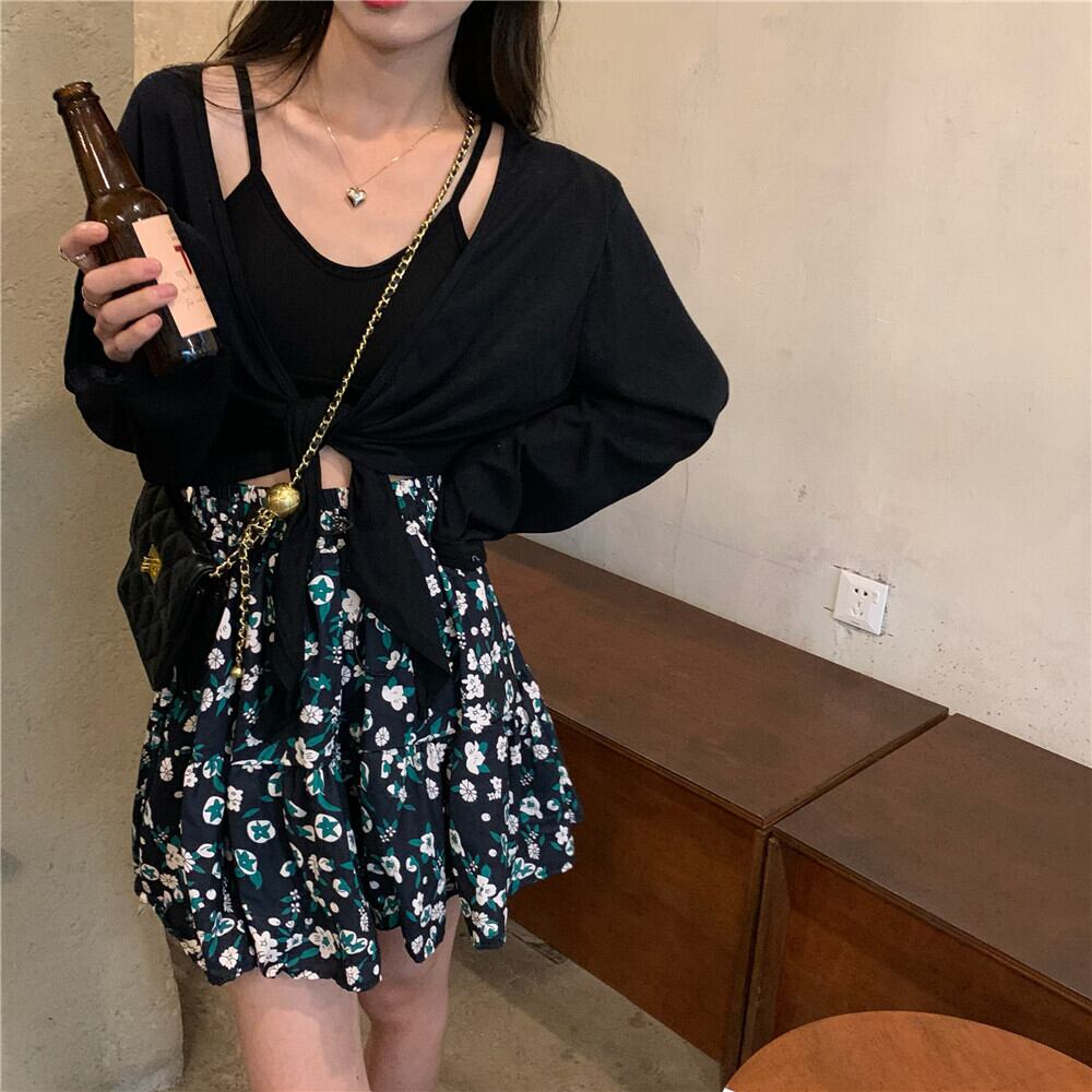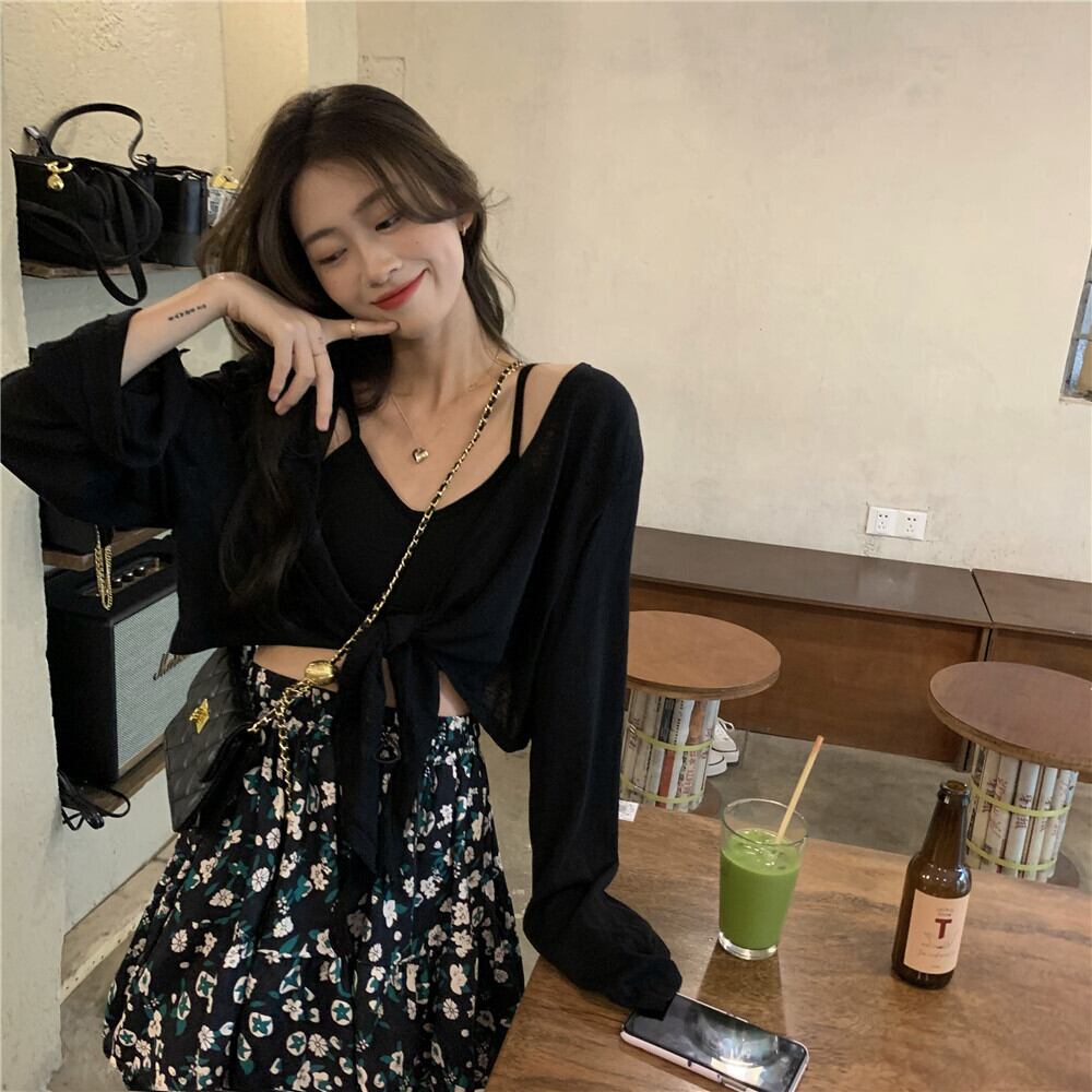 ブラックカーディガンジャケット サマー薄手シャツ ショートトップス 夏物 スーパーモール46873599143