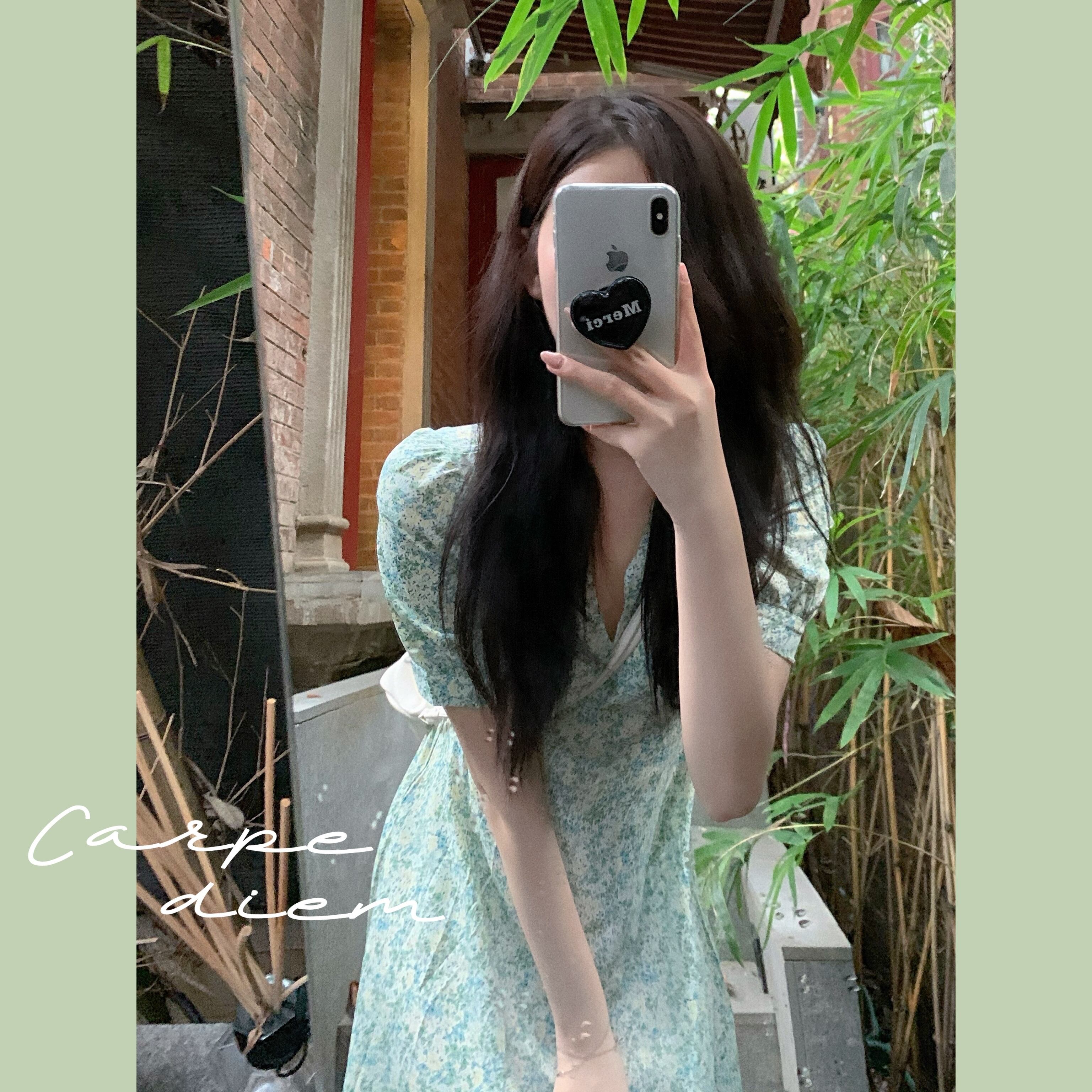 Vネックスリーブフローラルドレス サマーウェストロングスカート 夏物 花柄 スーパーモール37507117454