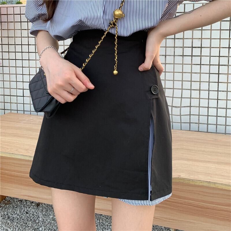 色:シングルブラックストライプシャツ,カーキスカートワンピース,黒のハーフスカートワンピース,アプリコットストライプシャツワンピース