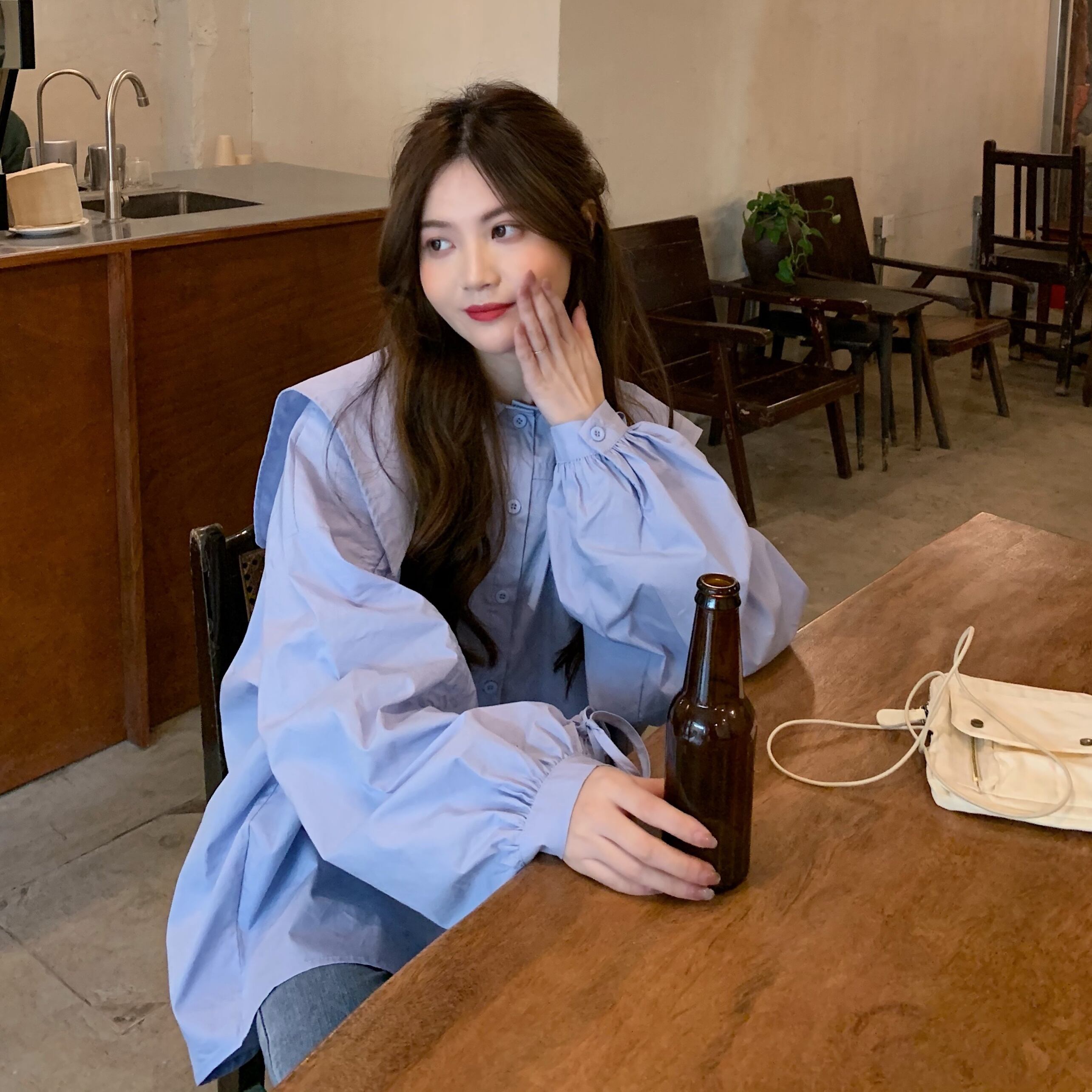 スプリングスタンダードカラーシャツ ブルーサマー ロング レトロ 春物 夏物 スーパーモール51254595981