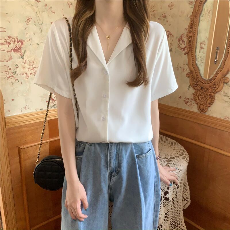 ホワイトシャツ レディースサマー薄手スタイルトップス 夏物 スーパーモール93207794043