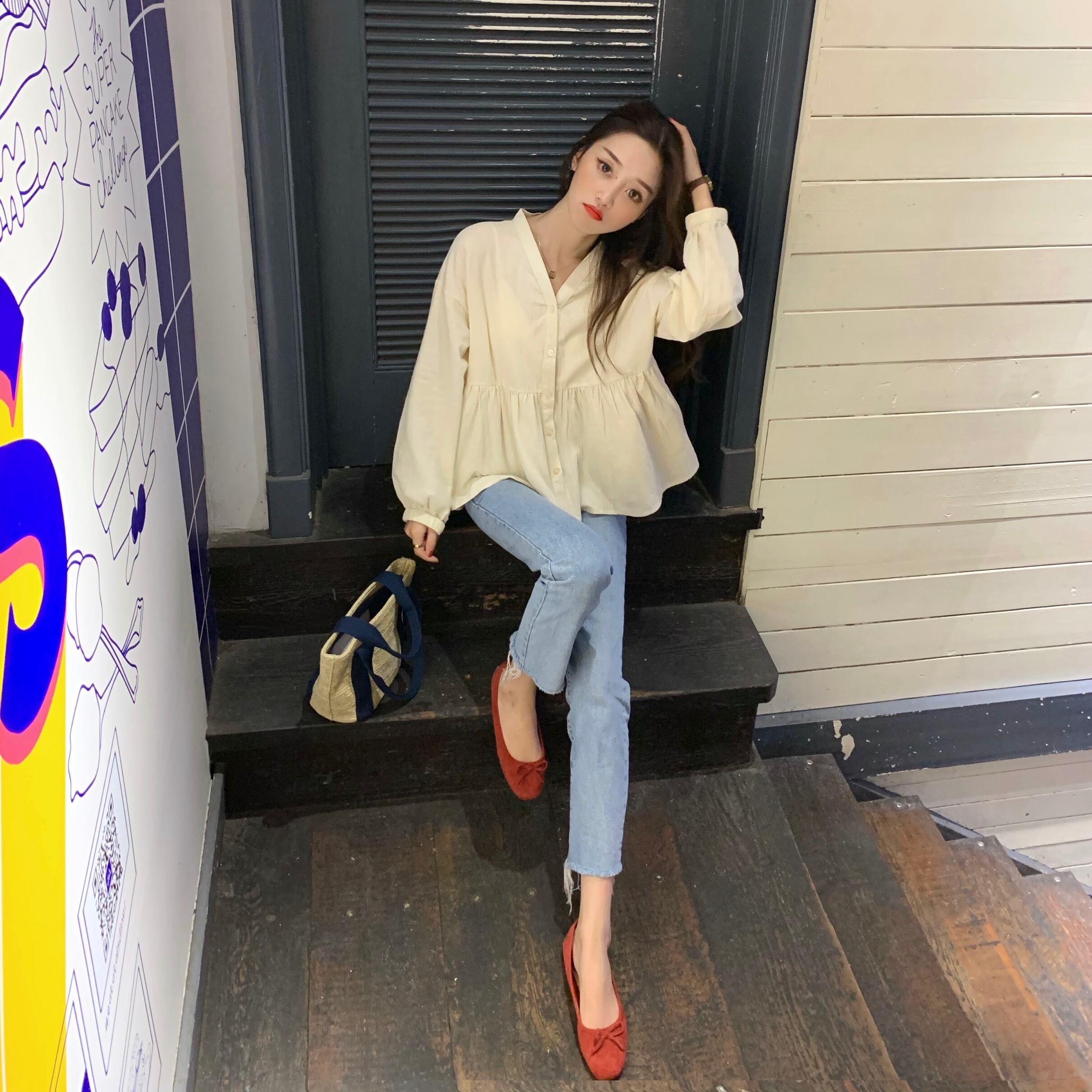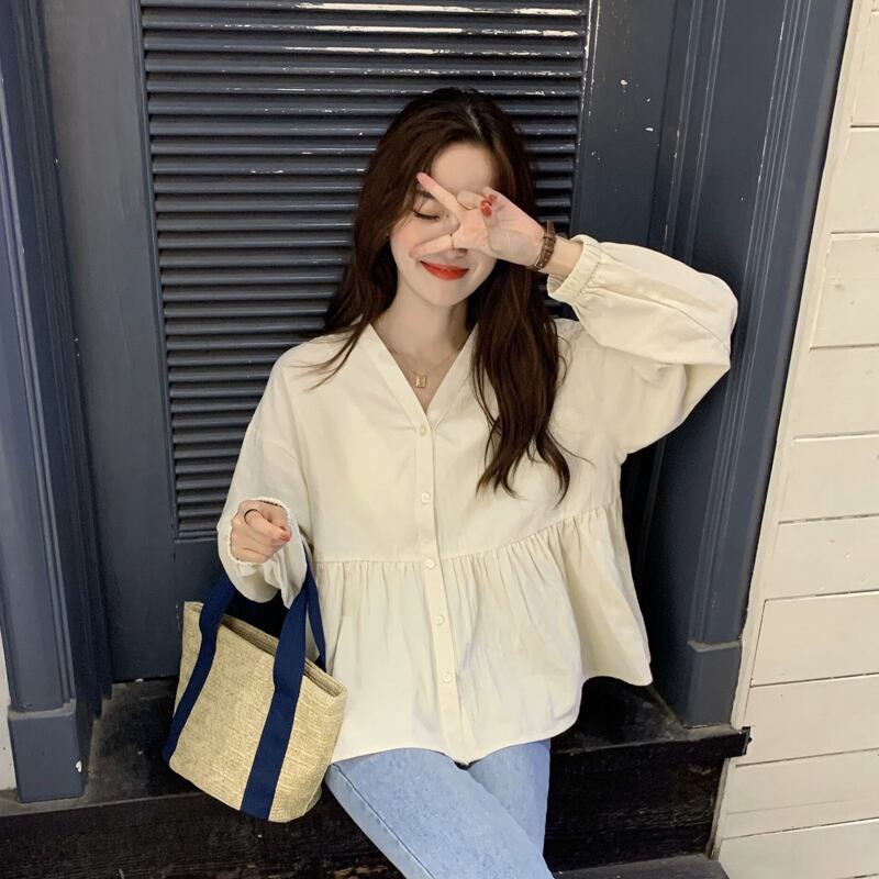 シャツ スプリングオータムスタンダードスタイルトップス ロング レトロ 春物 秋物 スーパーモール77895322465