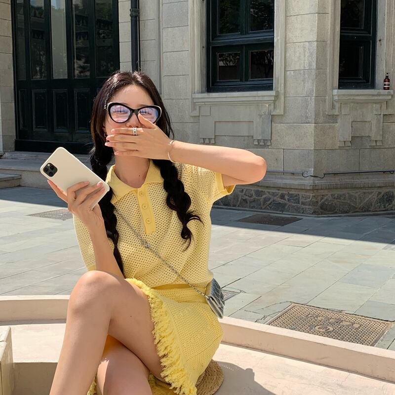 色:黄色のシャツワンピース,黄色のスカートワンピース