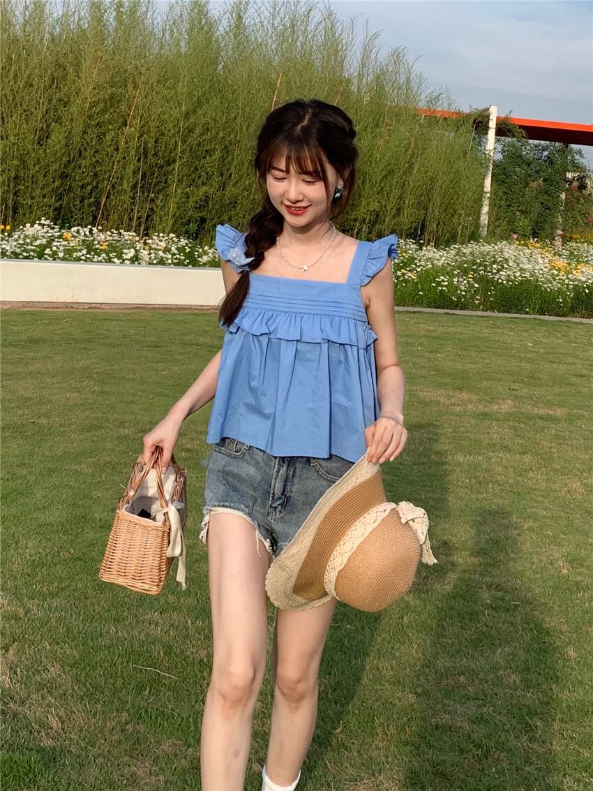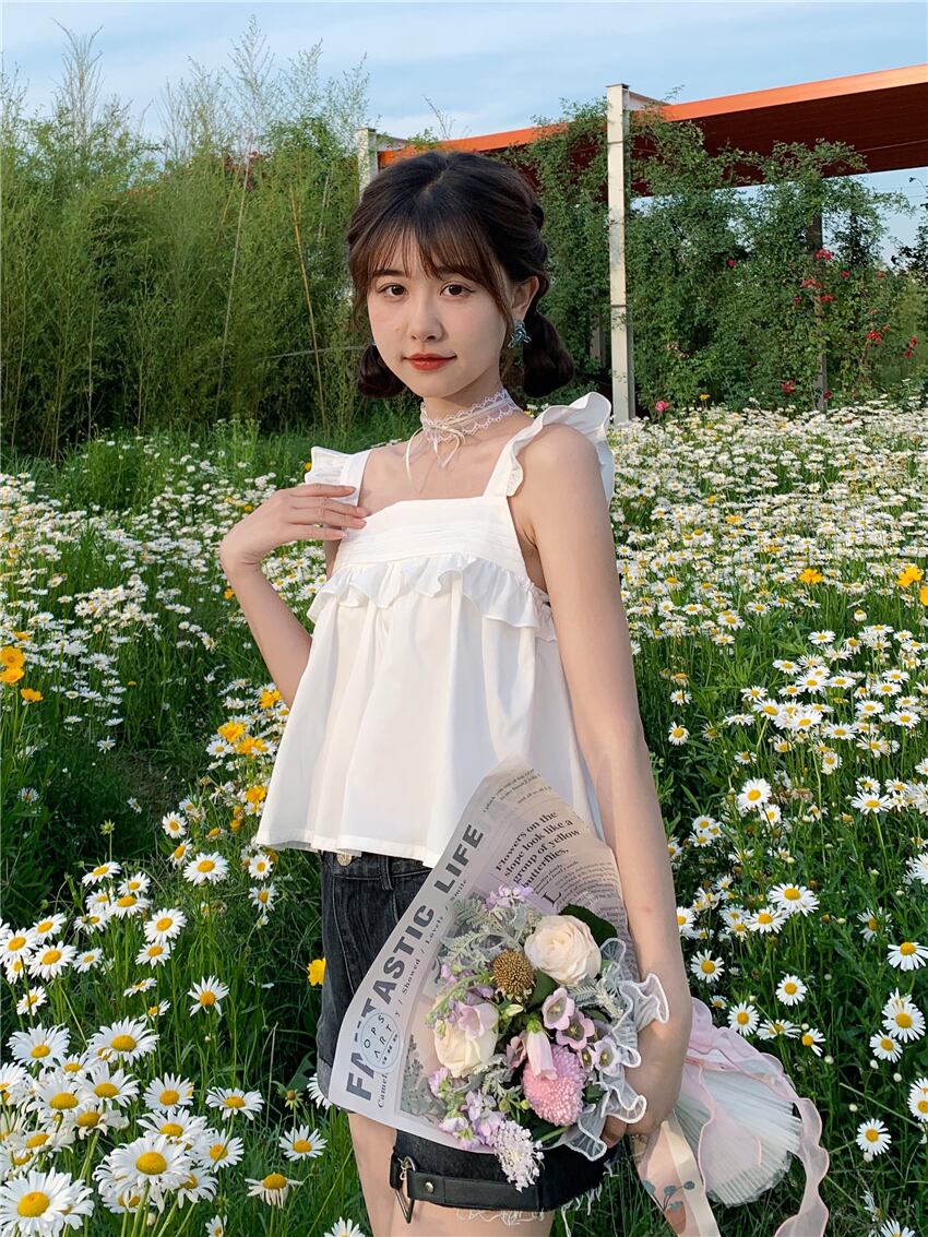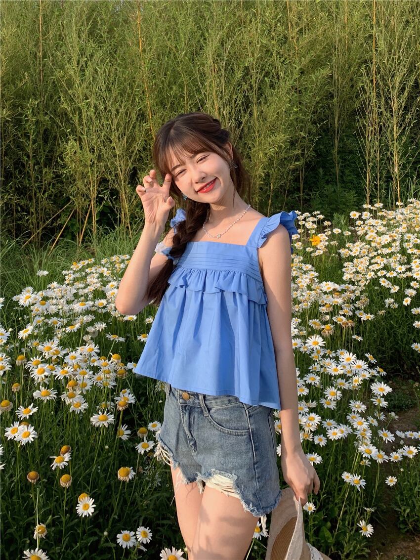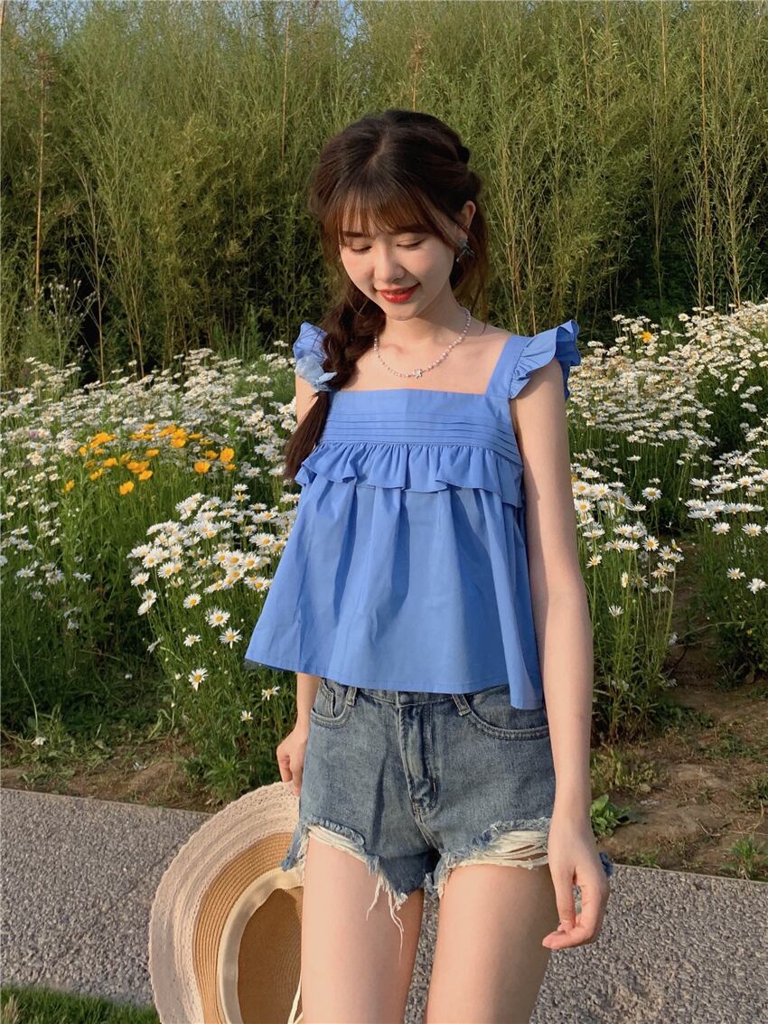 サイドレディースサマーノースリーブショートトップス 大人ガーリー スウィート キュート カジュアル 夏物 スーパーモール56846291500