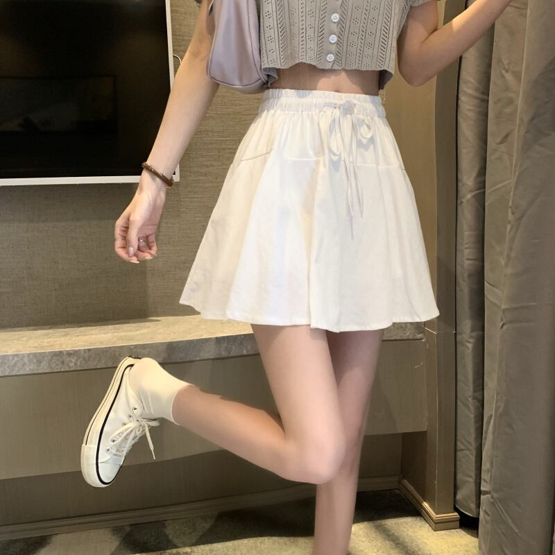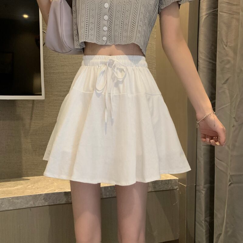スカート サマーホワイトショートハイウェストウェスト薄手Aライン 夏物 スーパーモール70012557308