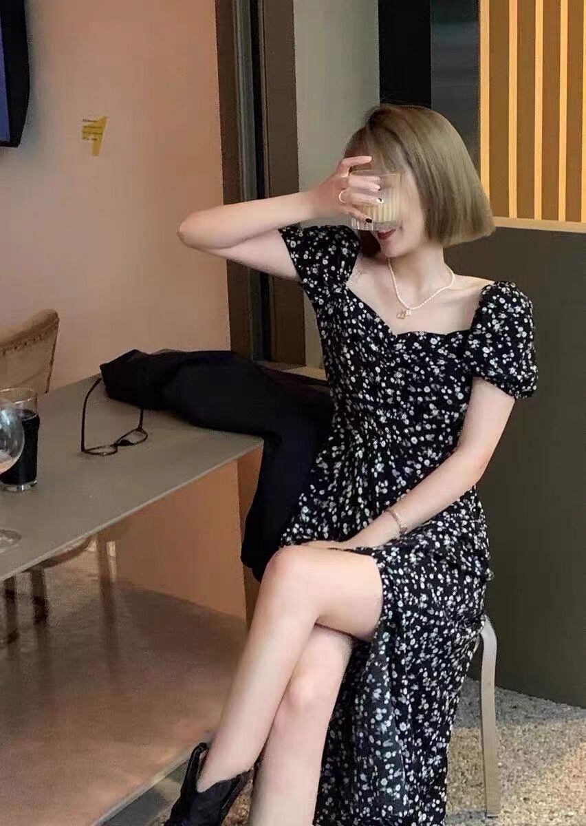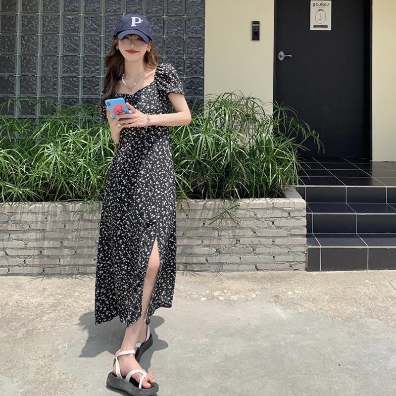 スリーブフローラルドレス サマースタイルスタンダードロングスカート レトロ 夏物 花柄 スーパーモール4293055411