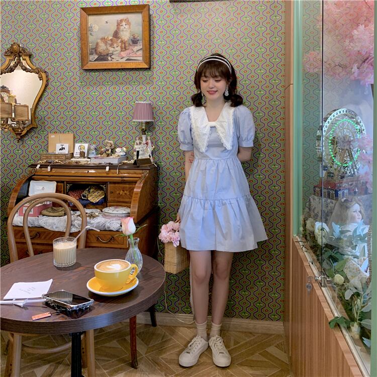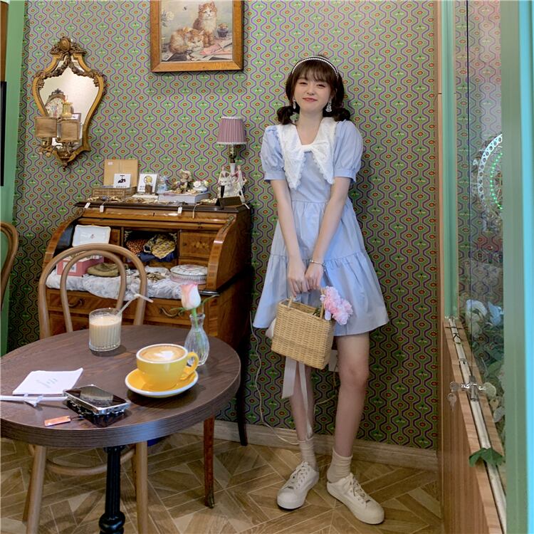 カラースリーブドレス サマーショートスカート 大人ガーリー スウィート キュート カジュアル 夏物 スーパーモール47079625044