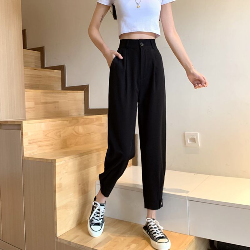 サマー薄手カジュアルパンツ レディースハイウェストウェストスリムブラックルーズ 夏物 スーパーモール73410995597