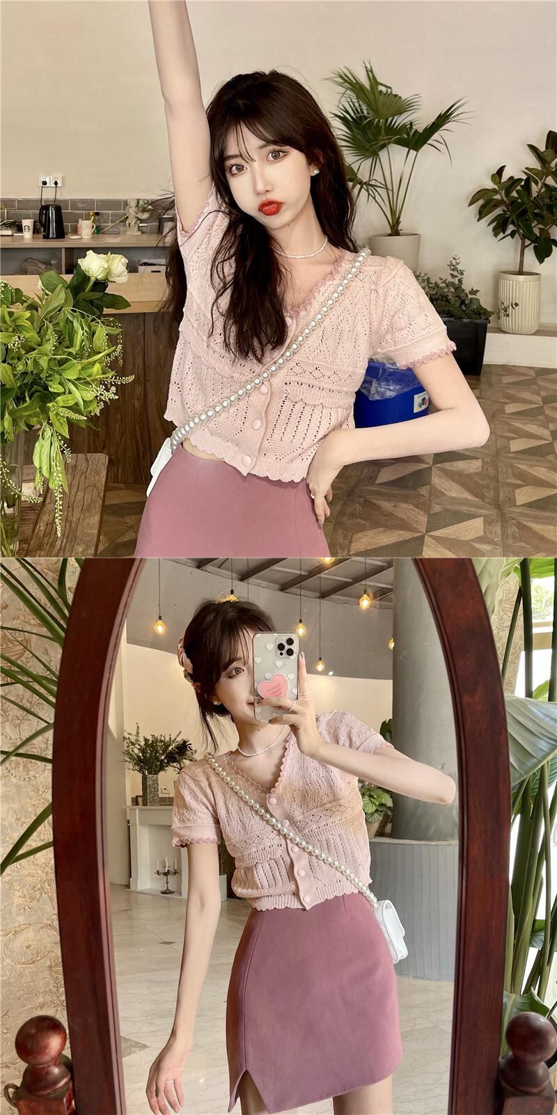 ブルーニットショートTシャツ サマーVネック 夏物 スーパーモール97003064095