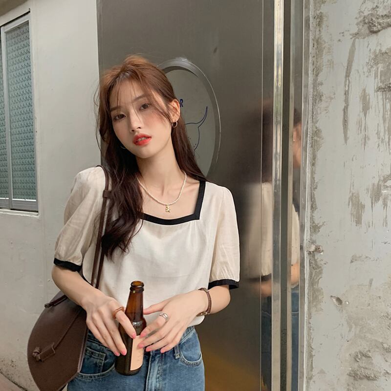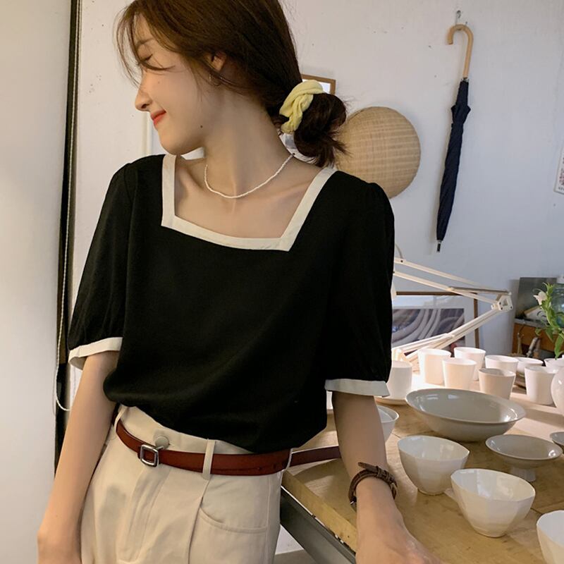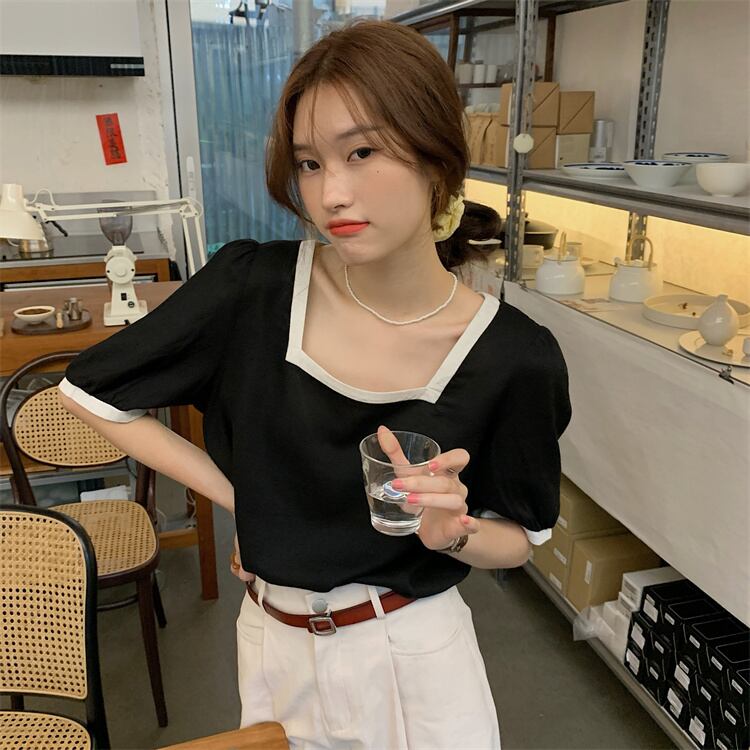 カラースリーブドレス サマーブラックシャツ 夏物 スクウェア スーパーモール21078709302