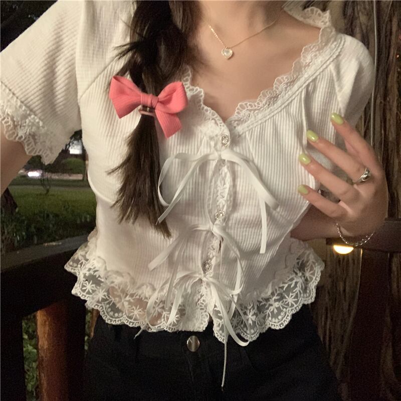 ホワイトレースショートシャツ サマートップス 夏物 スーパーモール70826128185