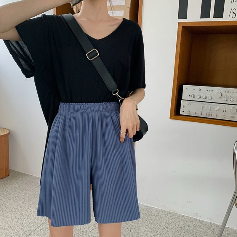ルーズカジュアルショーツ サマー薄手プリーツハイウェストパンツ 夏物 ブルマー スーパーモール89064464545